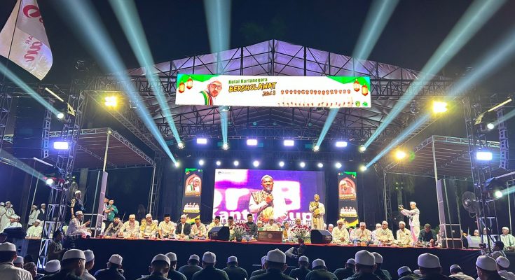 Swaraetam.com, Kukar – Ribuan masyarakat tampak khusyuk dalam lantunan sholawat serta doa yang dipimpin oleh sejumlah alim ulama, termasuk Habib Ali Zainal Abidin Assegaf, dalam acara Kukar Bersholawat Jilid III sukses digelar di Kecamatan Tenggarong pada Sabtu (30/6/2024).