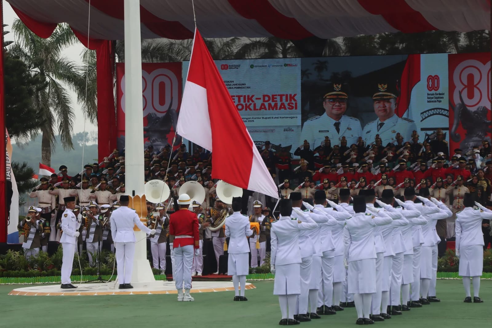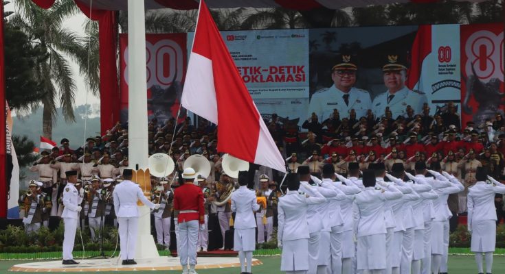 Swaraetam.com, KUTAI KARTANEGARA – Meski sempat diguyur hujan gerimis, upacara peringatan HUT ke-80 Proklamasi Kemerdekaan RI tetap berlangsung khidmat di Kabupaten Kutai Kartanegara (Kukar), Minggu (17/8/2025). Ribuan peserta dari berbagai unsur hadir memenuhi halaman Kantor Bupati Kukar, Jalan Wolter Monginsidi, Tenggarong.